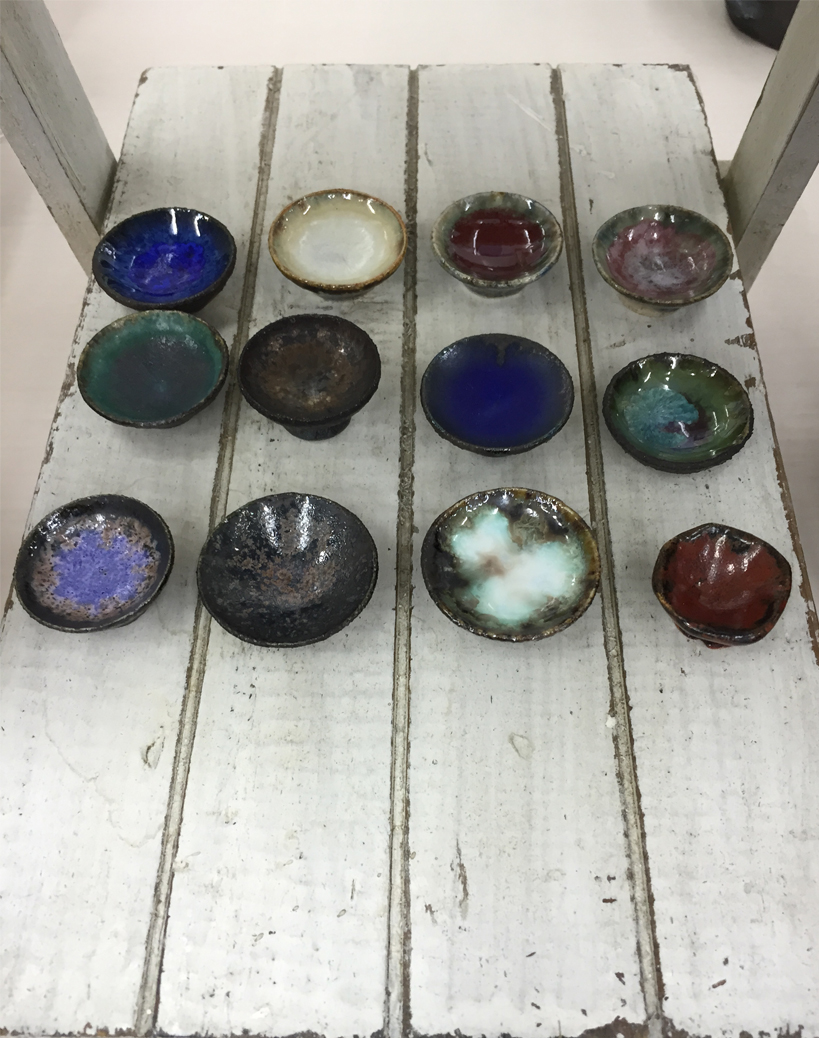 作品展として、当店の外側ガラス張りの小さな展示コーナーにて、現在ハルちゃんの豆皿&豆湯飲みを展示中です。